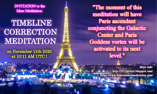 O momento desta meditação terá o ascendente de Paris em conjunção com o Centro Galático, e o vórtice da Deusa em Paris será ativado para o seu próximo nível.